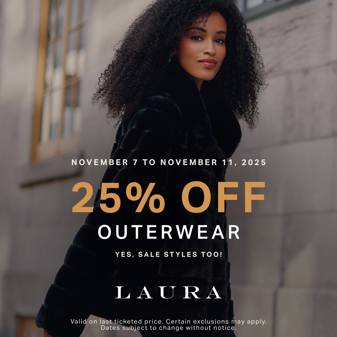 Laura Outerwear Sale From November 7th-11th, receive 25% off outerwear at Laura. Posted on 03/11/2025 + Share! More News